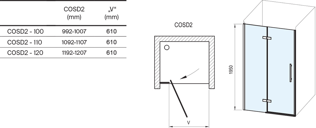 Otočením výrobku o 180° získate ľavý alebo pravý variant otvárania dverí. Výrobok sa montuje do vymurovanej niky, alebo v kombinácii s pevnou stenou COPS, na liate vaničky Gigant Pro, Gigant Pro Chrome alebo priamo na podlahu so zabudovaným odtokovým žľabom či podlahovou vpustou. Vzpera je súčasťou balenia. Použitím nastavovacieho profilu CONPS je možné sprchové dvere rozšíriť o 25 mm (na strane umiestnenia magnetu a je využiteľný iba pri inštalácii v nike).